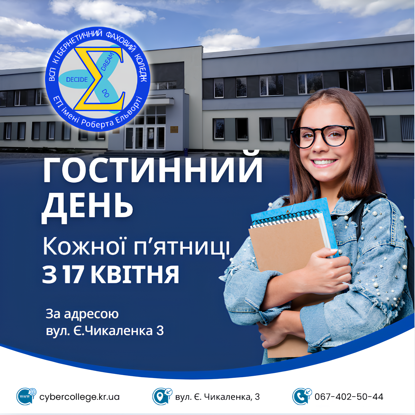 Кібернетичний фаховий коледж запрошує абітурієнтів та всіх зацікавлених на Гостинні дні, які відбуватимуться щоп’ятниці, починаючи з 17 квітня.